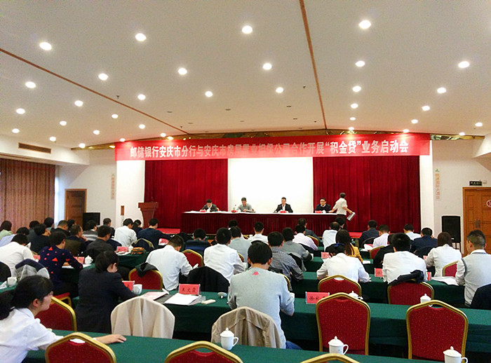 11月6日下午,安慶市房屋置業(yè)擔(dān)保公司與郵政儲蓄銀行安慶市分行聯(lián)合召開“置業(yè)消費(fèi)貸”業(yè)務(wù)啟動會。安慶市房屋置業(yè)擔(dān)保公司董事長、總經(jīng)理沈軍、副總經(jīng)理鄧寅和郵政儲蓄銀行安慶市分行黨委書記、行長戴四清、副行長李金發(fā)等出席啟動會,擔(dān)保公司七縣一市分公司經(jīng)理及郵儲銀行各縣支行行長等60余人參加了會議。