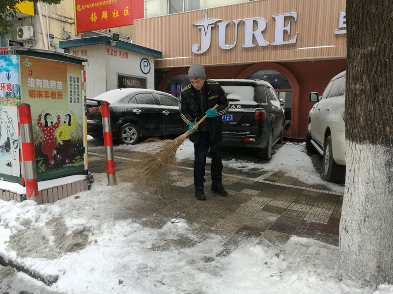 1月26日早上7點,市房屋置業(yè)擔(dān)保公司領(lǐng)導(dǎo)帶領(lǐng)黨員干部職工在包保路段開展積雪清掃行動,方便行人出行。